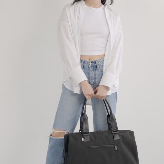 We designed this bag to take the hassle out of packing for the weekend or whichever days you’re away. Seriously, this tote’s easy-access opening makes getting everything in and out a breeze (no flashlight required). Plus, the bottom compartment is designed to keep your shoes, toiletries and travel essentials separate—you can even stash a hair dryer in there. Bonus points: there’s a zipper-pocket on the back that becomes a trolley sleeve so it fits over your luggage handle. Say Hello to your new favorite Carry-On Travel Bag.