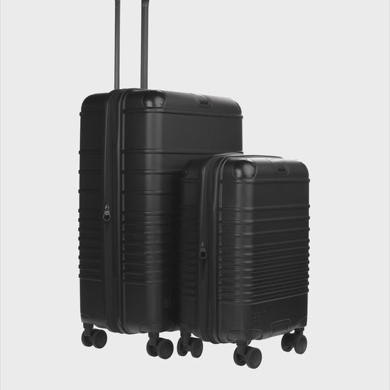 The Hybrid Luggage Set pairs the Hybrid Carry-On Roller with the Hybrid Check-In—designed to connect, coordinate, and move through every trip seamlessly. Together, they create a more streamlined way to travel, whether you’re carrying on or checking in. Both rollers feature our patent-pending Coupling System for a smooth, one-hand roll, along with aluminum corner guards, a textured shell, and refined hardware that keep everything looking as polished as it performs.