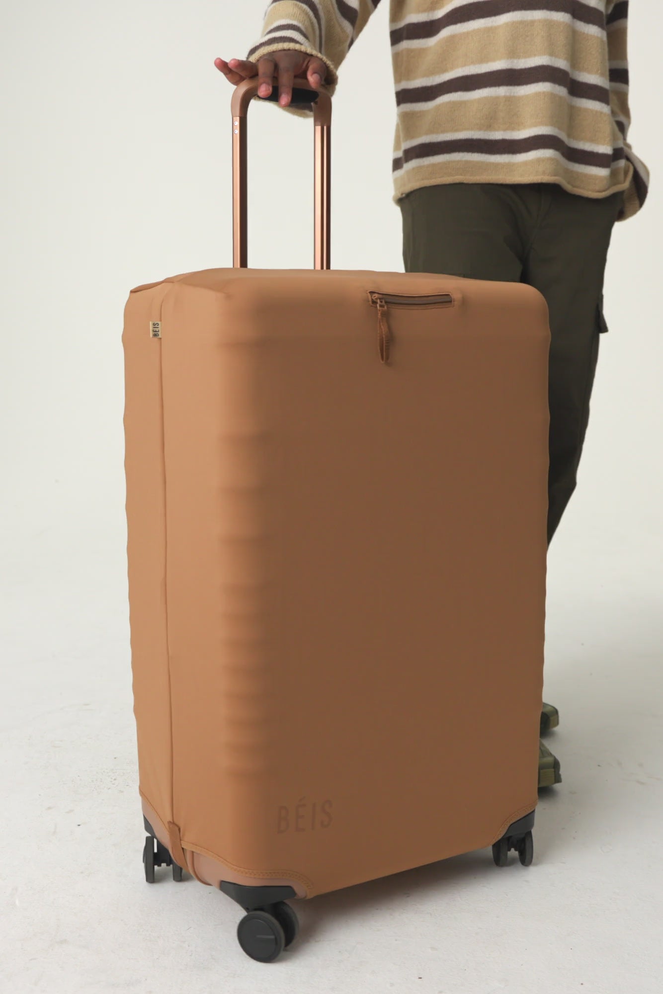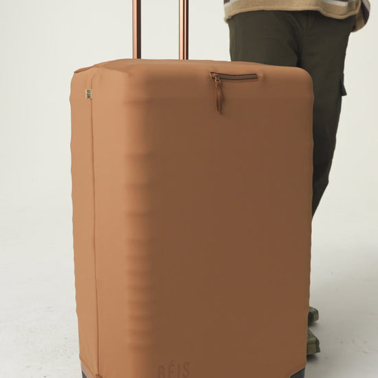 Keep your suitcase protected with a machine-washable luggage cover custom-crafted to fit your BÉIS Large Check-In Roller size. Made from a lightweight and durable stretch material, this cover provides top-tier protection from dirt, scuffs, and scratches — plus, it’s easier than ever to slide onto your suitcase then fold up and store later. Yep, we’ve got you covered.