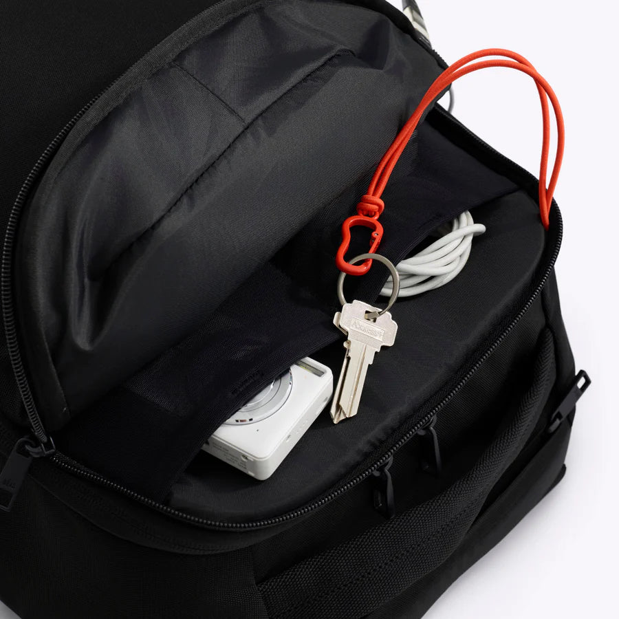 An interior key leash keeps essentials secure and easy to find.