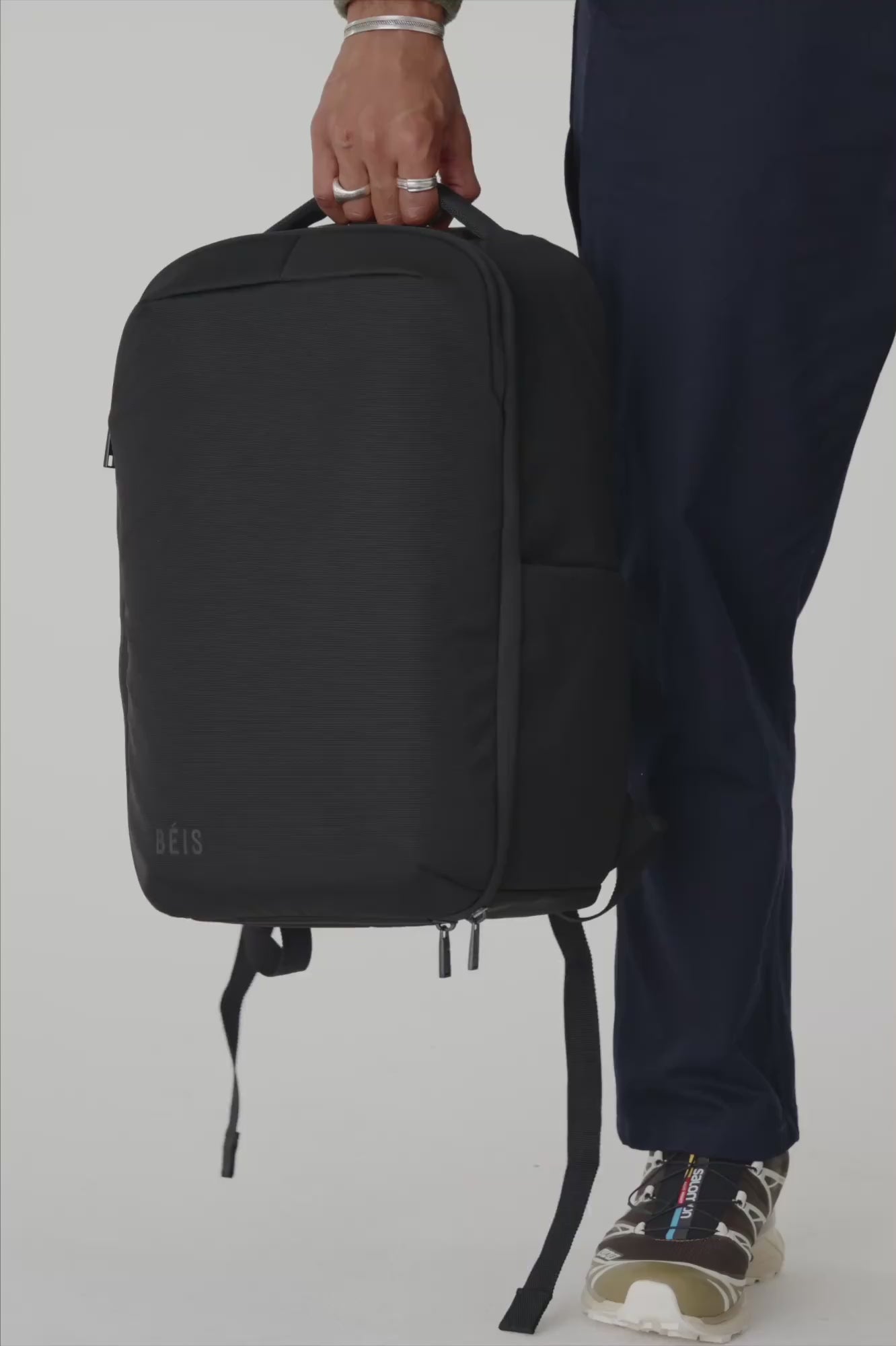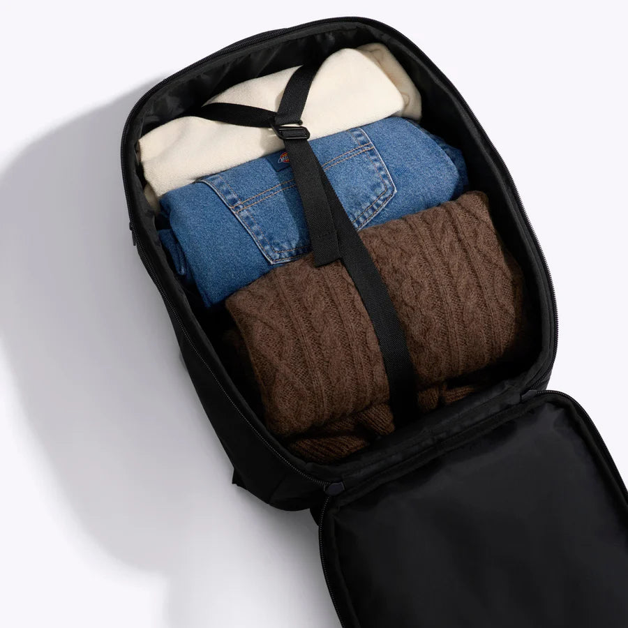 Carry it comfortably with padded, ergonomic backpack straps or stack it onto your roller using the trolley pass-through when you’re on the move. Designed to transition seamlessly from commute to airport to destination—capable enough for wild changes of plans, without looking like you packed for the wilderness.